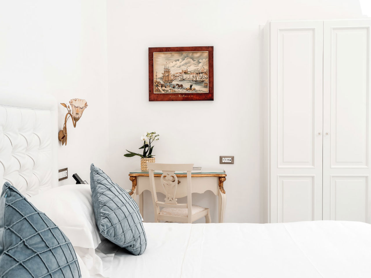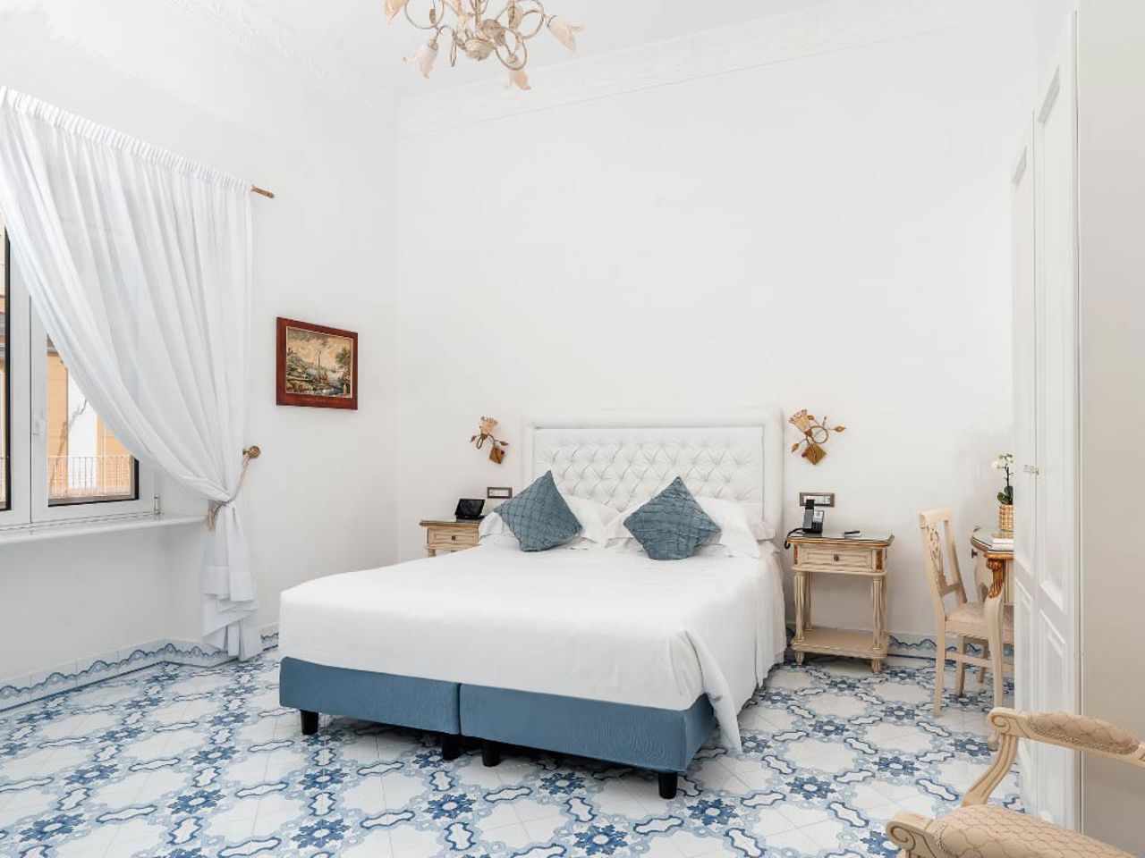 Confortáveis e arejados, elegantes e de estilo clássico, com madeira incrustada e decorações em ouro e latão, jogam com as cores do mar e do sol, expressão perfeita do estilo mais tradicional de Capri. Concebidos para duas pessoas, oferecem uma vista sobre a cidade de Capri.
